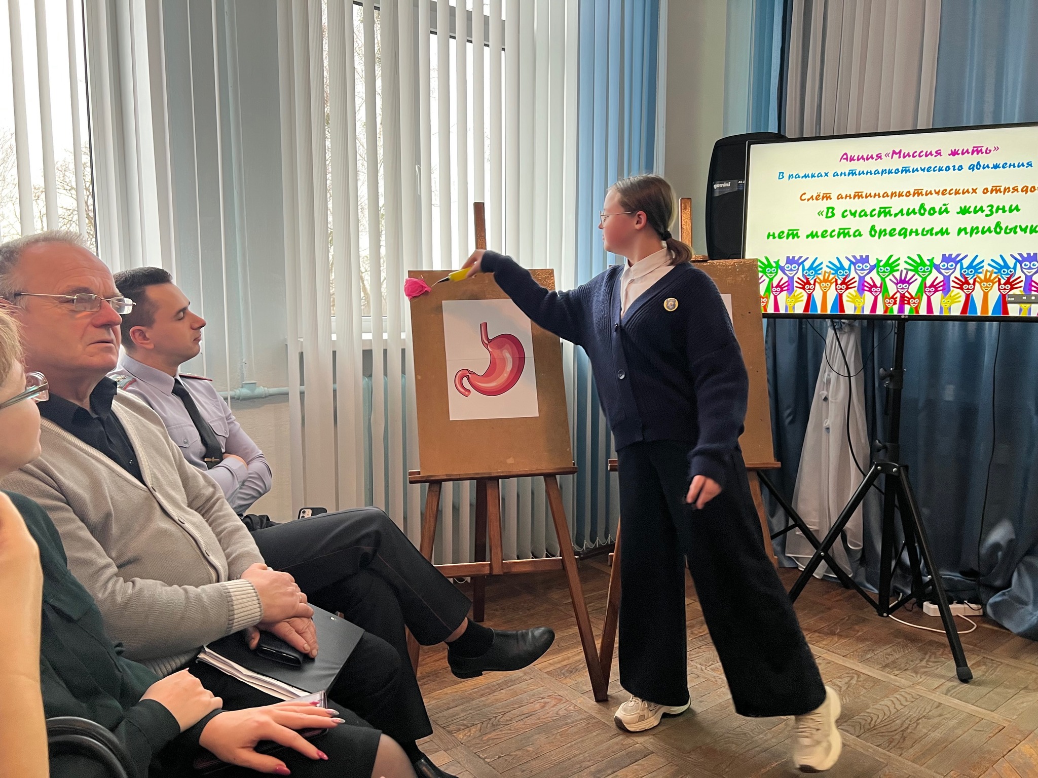 Участники слёта прошли предложенные станции: «Организм человека», «Ситуации», «Закон» на базе антинаркотической площадки «Вместе против наркотиков».
